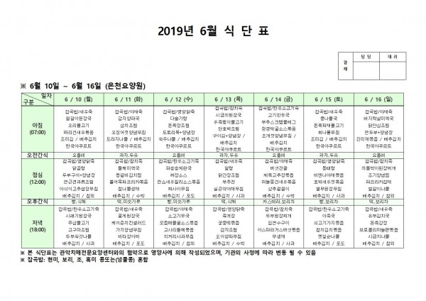 6월 둘째주 식단표 페이지 정보 작성자 은천노인복지회 작성일19-06-17 13:13 조회205,871회 댓글0건 관련링크 이전글 다음글 목록 답변 본문 6월 둘째주 식단표 이전글 다음글 목록 답변