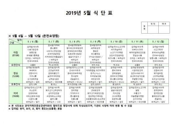 5월 첫째주 식단표 페이지 정보 작성자 은천노인복지회 작성일19-05-13 13:11 조회207,931회 댓글0건 관련링크 이전글 다음글 목록 답변 본문 5월 첫째주 식단표 이전글 다음글 목록 답변
